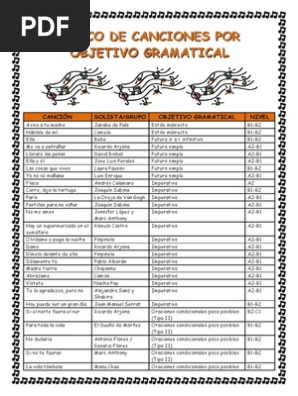 Banco De Canciones Por Objetivo Gramatical