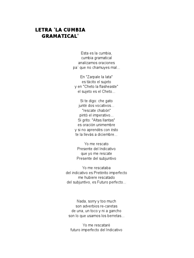 Letra La Cumbia Gramatical Gramatica Amor