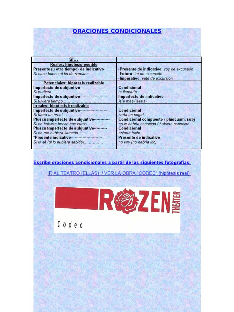 Ejercicios De Espanol Condicional Irreal O Poco Probable